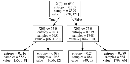 cls = DecisionTreeClassifier(max_depth = 2,criterion="entropy")