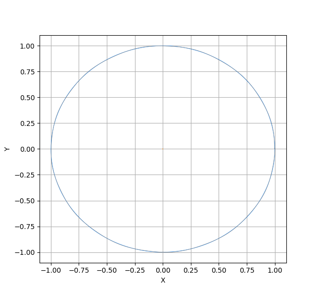 これらを考慮しながら、太陽を原点に、$z=0$の平面上での3天体の運動を1年分シミュレーションするコードの例を以下に示した。