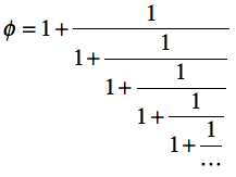 $y=1+1/x$ の $y$ の高さが $x^\prime$ に対応するので、 そこから水平線を横に伸ばして、$y=x$ との交点の位置を求め、 その点での $x$ の値を次の計算ステップの出発値 にすれば、 $x \leftarrow x^\prime$ とおいて、次の反復へと進んだことになる。