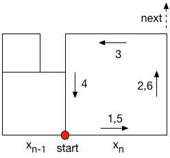 少し「無駄足」になってしまうが、正方形を描く際に、同じ場所を再びなぞることで、一筆書きで描くことができるはずだ(下図)。