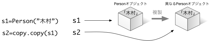 オブジェクトのコピーを新たに作成したい場合は、copyモジュールを使って、以下のようにする。