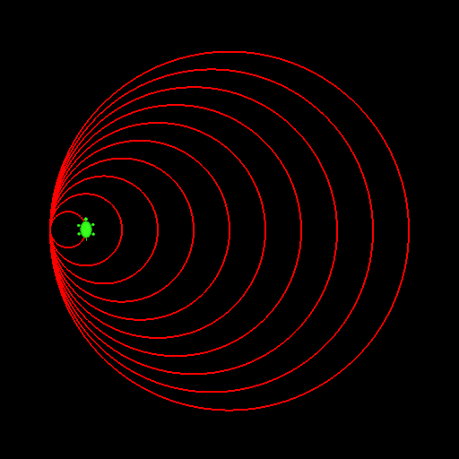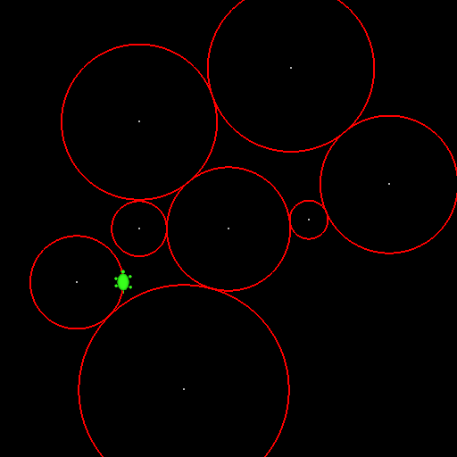 そこで、circle()関数では、半径に応じて辺の長さを適切に調整することで、小さな円ほど素早く描ける(亀場での描画時間が短くなる)ように工夫せよ。
